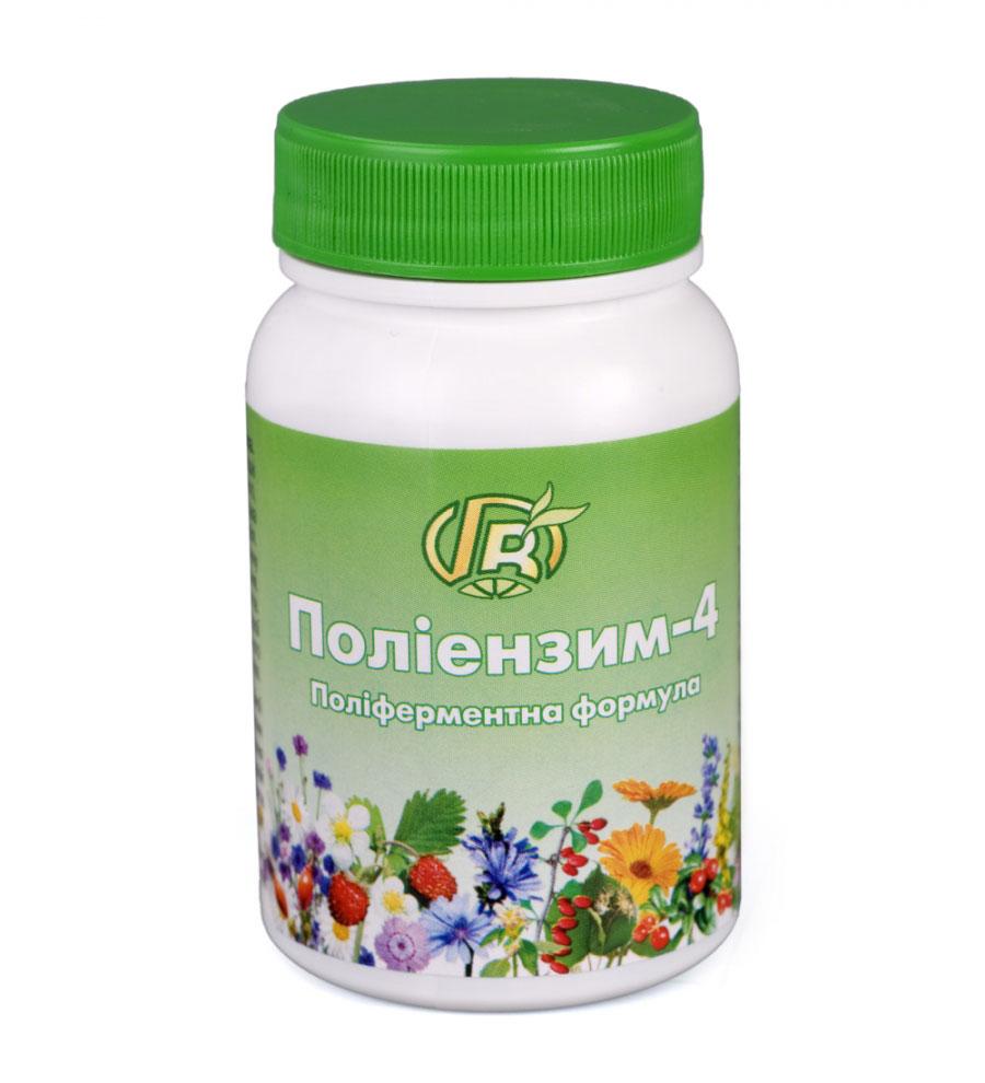 Формула спрямована на відновлення імунологічної реактивності організму. Поліензим-4 нормалізує обмін речовин, секреторну та ферментативну функції, сприяє підтримці кислотно-лужної рівноваги в організмі, активізує дренажні функції сечовидільної системи, покращує кровотворення, відновлює еластичність і тонус судин, благотворно впливає на кровообіг, посилює мікроциркуляцію. і ранозагоювальні дії, покращує детоксикаційну функцію печінки, має жовчогінну дію, підвищує адаптаційні можливості організму при стресах, інфекціях, променевих ураженнях, хіміо- та антибіотикотерапії, сприяє нормальному перебігу вагітності та пологів. Показання: Порушення імунітету, в т.ч. аутоімунні патології;