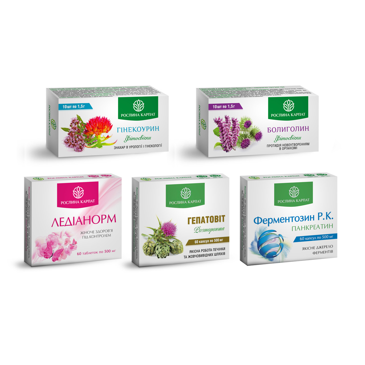 В програму входить Гепатовіт,Ледіанорм,свічки Болиголин та Гінекоурин,Ферментозин.